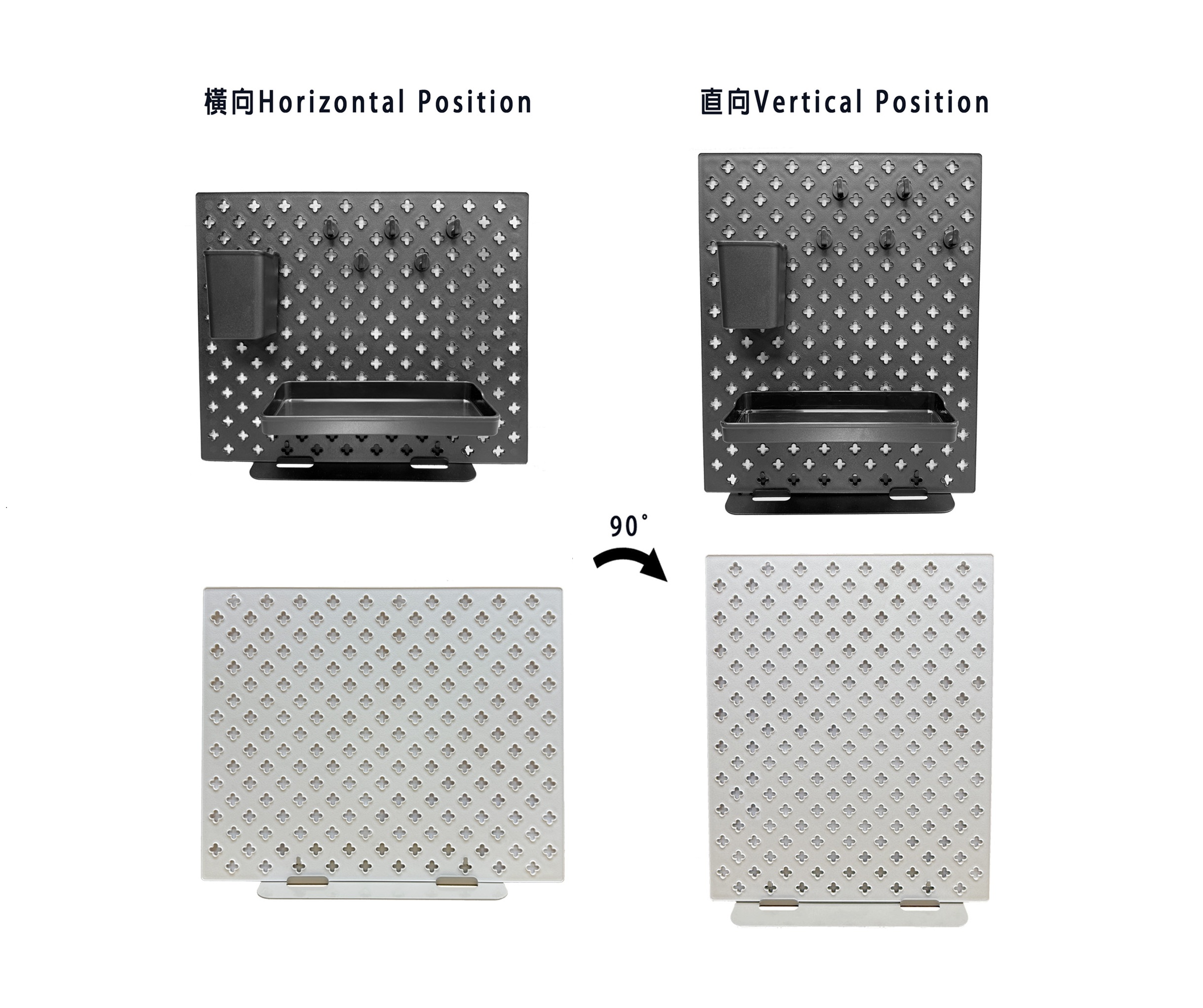 ITEM#SP-100 BLK / WHT Product Description:Storage Pegboard with Metal Base Dimension : 43.5*17*355cm Weight : 1150g Material: ABS、Metal Product Includes:Pegboard x1,Container x1,Shelf x1, Hooks x5, Metal Base x1,EVA Foam x1
