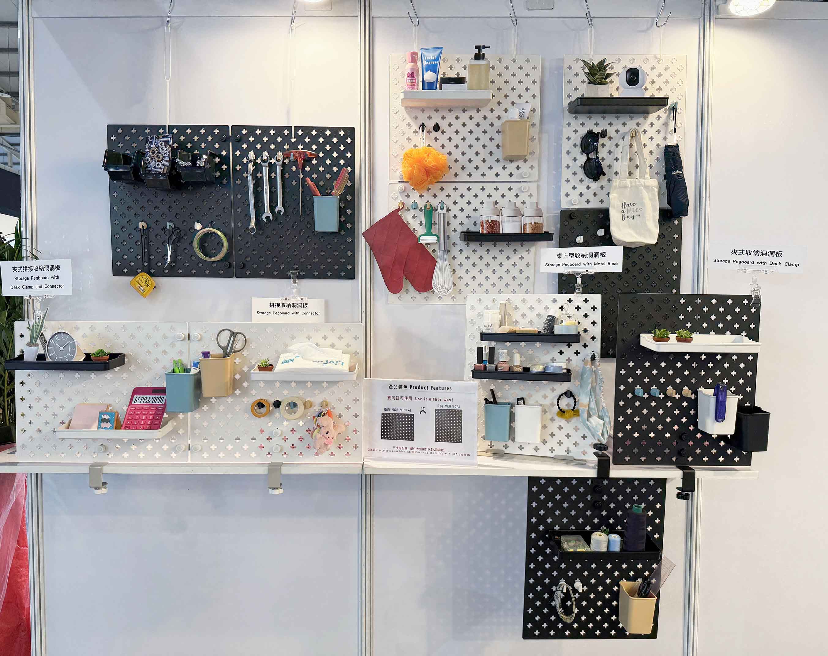 - SP-100 BLK/ WHT Storage Pegboard with Metal Base - SP-101 BLK/ WHT Storage Pegboard with Desk clamp - SP-102 BLK/ WHT Storage Pegboard with Wall mounting - SP-201 BLK/ WHT Storage Pegboard with Desk clamp and Connector - SP-202 BLK/ WHT Storage Pegboard with Wall mounting 2 sets